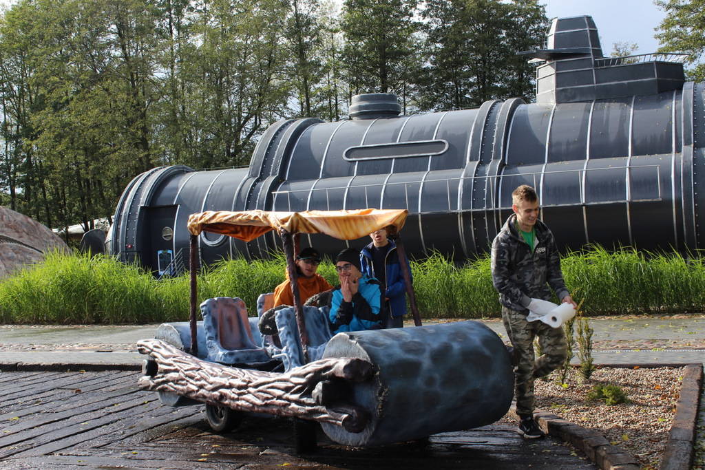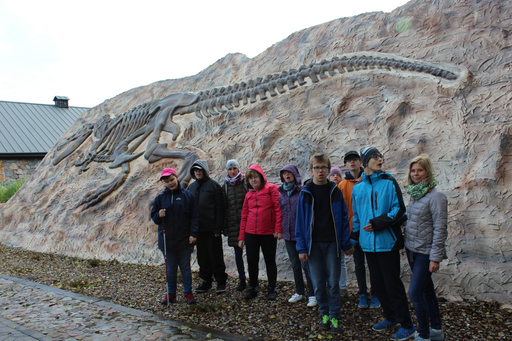 Dnia 5.10.2017r. wychowankowie grup całodobowych wspólnie z wychowawcami : p. M. Jaroń M. Buszka i A. Czaja wybrali się na wycieczkę do Parku Ewolucji w Sławutówku gdzie czekało na nich wiele atrakcji. W kinie prehistorycznym uczniowie mieli możliwość przeniesienia się do czasów kiedy powstała ziemia . Na ścieżce dinozaurów wszyscy z uwagą przyglądali się olbrzymim i wydającym różne dźwięki dinozaurom. Najciekawszą atrakcją okazał się multimedialny seans 7 D w batyskafie w czasie którego uczniowie spotkali się oko w oko z mieszkańcami mórz i oceanów. Na koniec czekała kolejka jaskiniowców i zabawa na placu zabaw. Wycieczka dostarczyła uczniom wielu pozytywnych i ciekawych wrażeń.