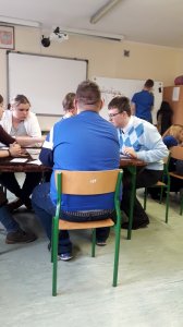 Między rozgrywkami uczestnicy rysowali lub pisali na tablicy swoje skojarzenia z hasłem "patriotyzm". Powstały ciekawe rysunki. Uczeń Szymon Tekiela zdobył w tym konkursie 2 miejsce! Gratulacje!!!