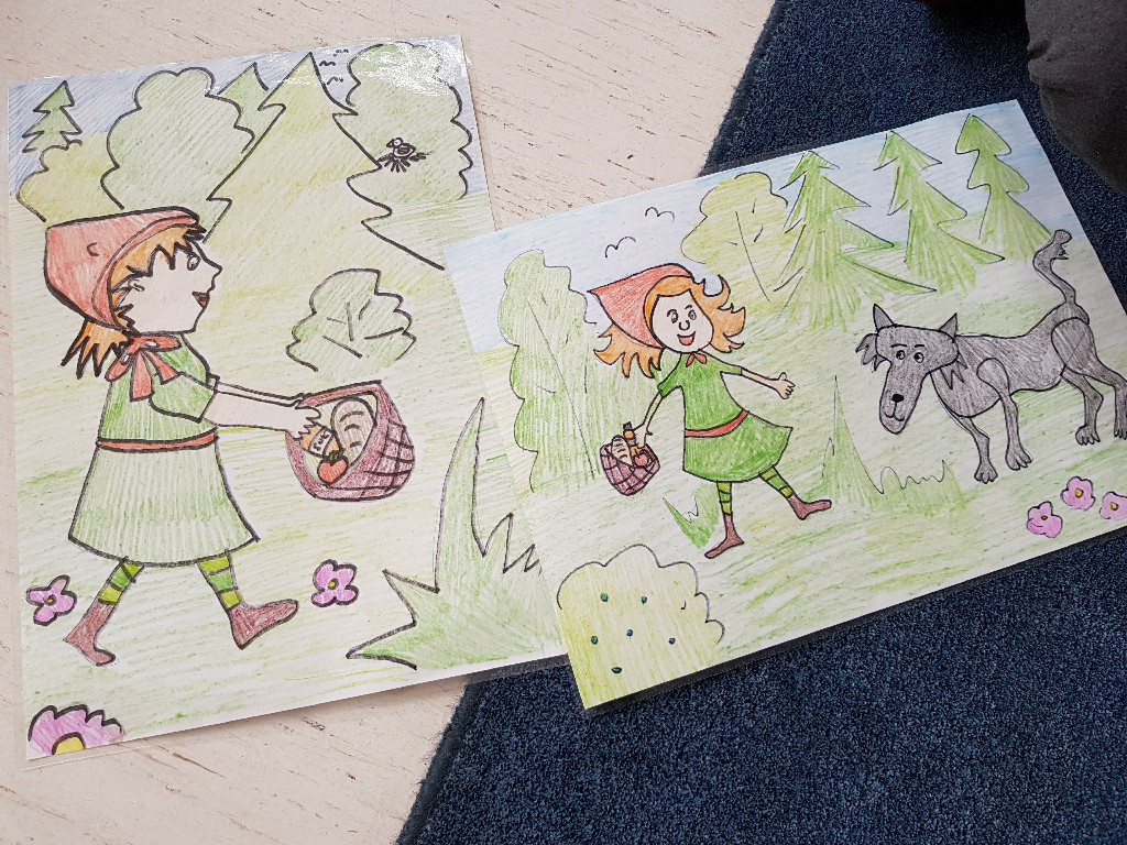 Po zapoznaniu się z treścią utworu „Czerwony Kapturek”, które miało miejsce podczas zajęć świetlicowych, uczniowie wzięli udział w warsztatach dotyczących bajki. Rozmawialiśmy o przebiegu wydarzeń w bajce, postaciach w niej występujących, emocjach jakie towarzyszyły dzieciom podczas słuchania i oglądania bajki. Na koniec każdy z uczestników warsztatów mógł przebrać się za ulubiona postać z „Czerwonego Kapturka”.