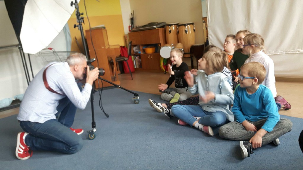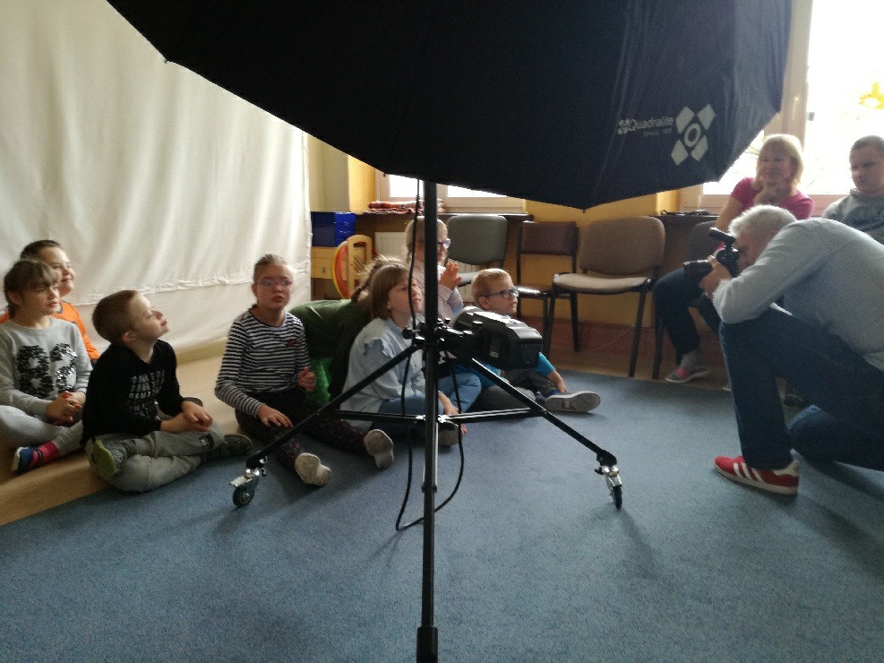 Kolejnym ciekawym wydarzeniem było spotkanie z fotografem, który zapoznał dzieci ze wszystkimi przyrządami potrzebnymi do wykonania dobrego zdjęcia, dokładnie omówił i pokazał budowę aparatu fotograficznego, a także wykonał każdemu z uczniów próbne zdjęcie. Na koniec spotkania wszyscy mogli zobaczyć jak wyszli na tych fotografiach.
