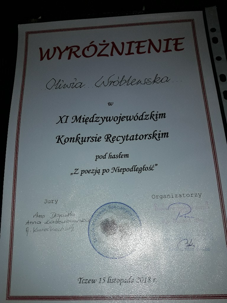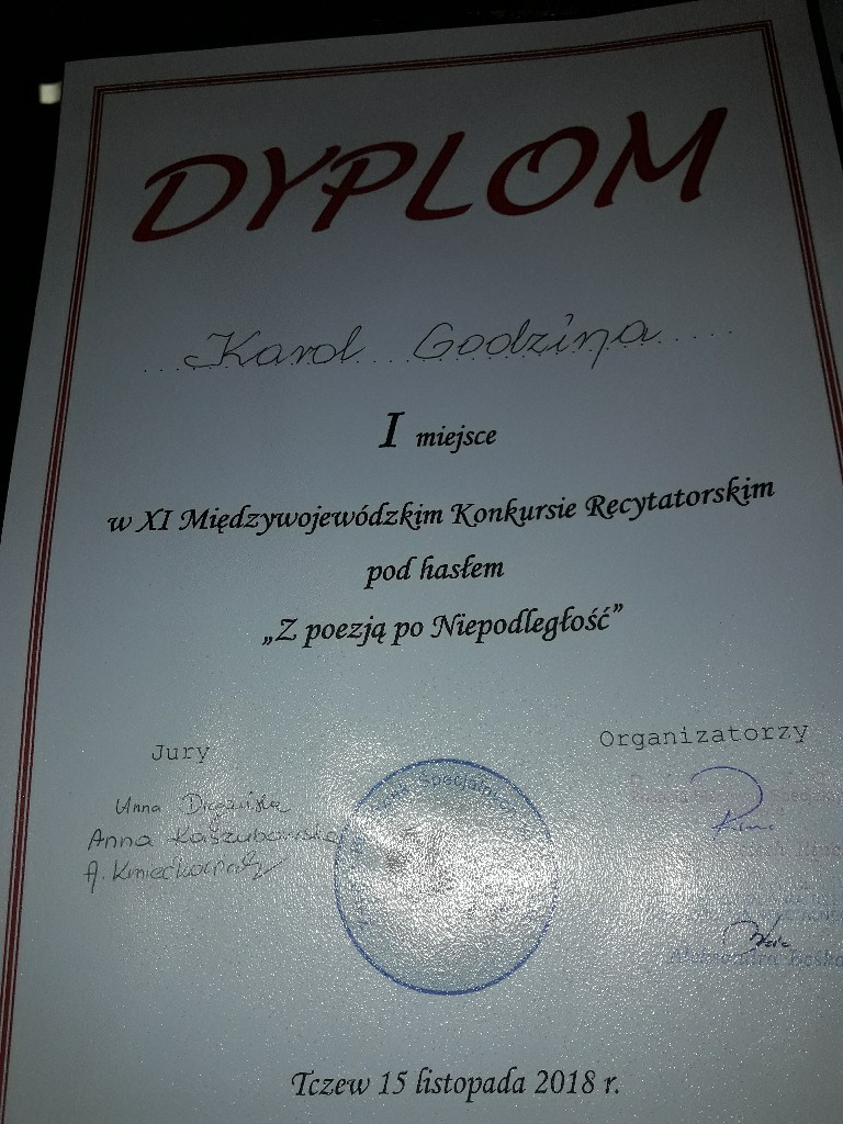 W czwartek 15 listopada 2018 roku w Zespole Placówek Specjalnych w Tczewie odbył się XI Międzywojewódzki konkurs Recytatorski pod hasłem „Z poezją po Niepodległość”.