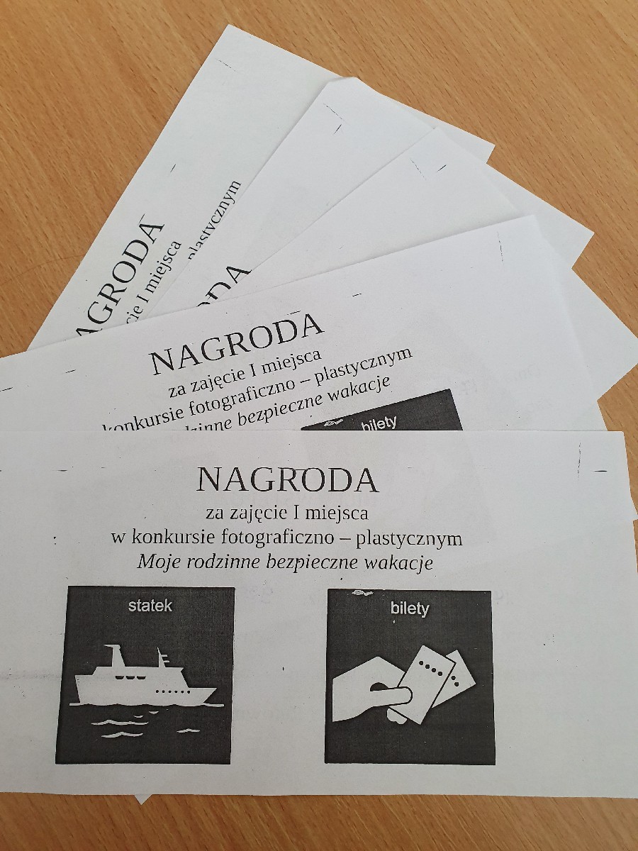 Dnia 23.09.2019r. zostały przyznane nagrody za udział w konkursie fotograficzno-plastycznym pt." Moje rodzinne bezpieczne wakacje".