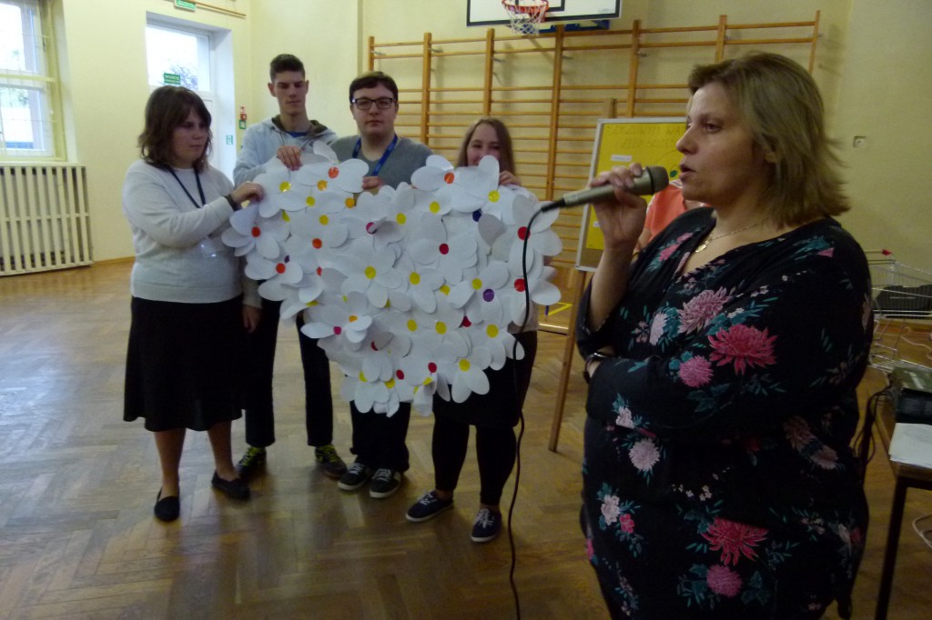Ogłoszony został też konkurs, którego rozwiązanie nastąpi 16 grudnia. Na korytarzu zawisło duże serce, na którym co tydzień przyklejamy małe serduszka z wypisanymi dobrymi uczynkami jakie przez tydzień każda z klas zrobiła. Tym samym tworzymy wspólną mapę życzliwości.