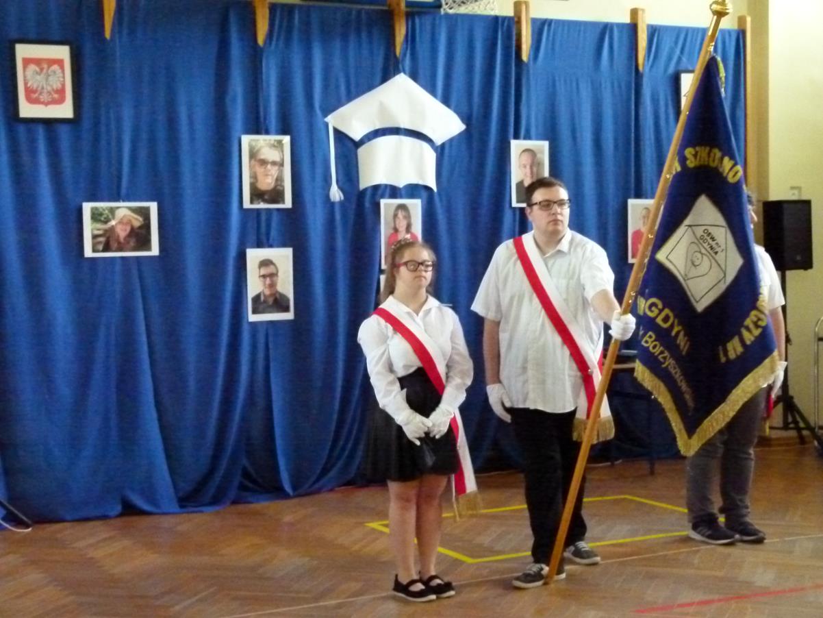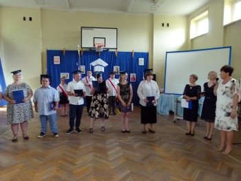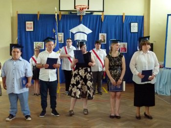 Dnia 24 czerwca 2021r. w naszym Ośrodku odbyła się niezwykle wzruszająca uroczystość Pożegnania Absolwentów Roku 2020 i Roku 2021, która rozpoczęła się dostojnym polonezem. Następnie przy melodii znanej piosenki "Ostatni raz z moją klasą" wychowawcy klas Agnieszka Witkowska-Strzelec i Elżbieta Skólska w oparciu o zdjęcia i prezentacje multimedialne przedstawiły długą drogę edukacyjną swoich uczniów: Dawida Golnika, Artura Knapińskiego, Klaudii Szadach, Patrycji Flis, Agnieszki Urban, Marcina Szejpaka, Oliwii Wróblewskiej i Andrzeja Strzelca. Pani Dyrektor Ośrodka Alicja Spica wręczyła uczniom świadectwa ukończenia Szkoły Przysposabiającej do Pracy oraz birety jako symbol absolwenta. Na zakończenie gali, na hasło „Birety w górę” – absolwenci podrzucili swe nakrycia głowy jako wyraz satysfakcji z otrzymania świadectwa ukończenia szkoły. Kochani Absolwenci!!! Przed Wami otwiera się nowy etap w życiu, czas kolejnych doznań, czas dalszego rozwoju, poznania nowych miejsc. Żegnamy Was życzeniami płynącymi z głębi serca. Niech omijają Was troski, smutki i zwątpienia, a towarzyszy zawsze radość, zrozumienie i prawdziwa przyjaźń!!!
