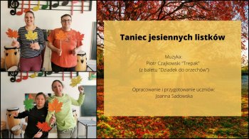 Zapraszam do obejrzenia filmów z udziałem uczniów klas 2A SPP oraz 2B SPP. Uczniowie wykonują zabawę muzyczno-rytmiczną – „Taniec jesiennych listków”, z wykorzystaniem jesiennych rekwizytów.