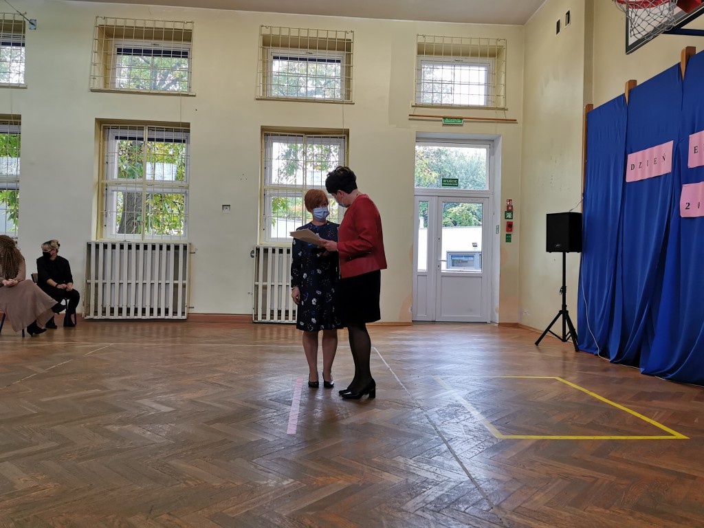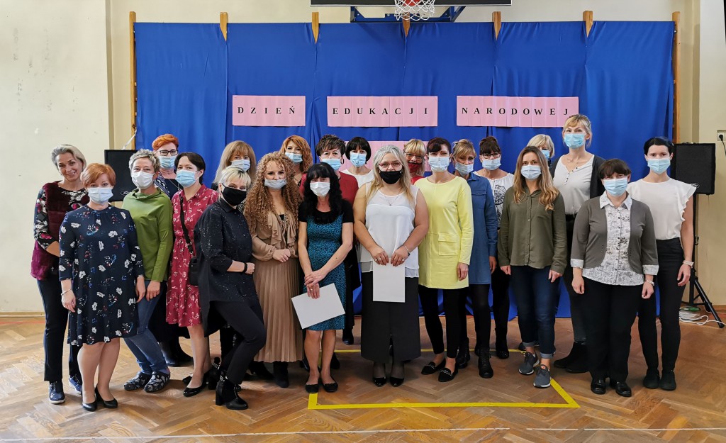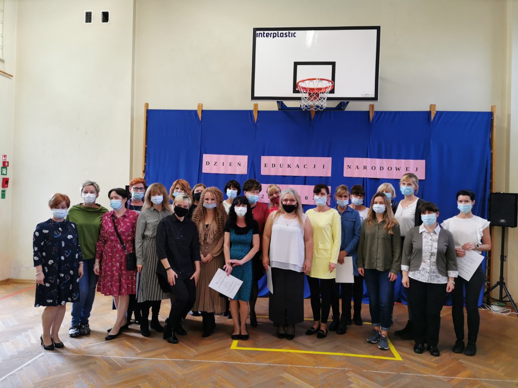 Dnia 15 października 2021 odbył się w naszej szkole apel z okazji Dnia Edukacji Narodowej. Uroczystość przebiegła w obostrzeniu covidowym. Tego dnia nauczyciele oraz pracownicy administracji i obsługi zostali nagrodzeni Nagrodami Dyrektora. Wydarzenie to uświetnił występ szkolnego zespołu muzycznego „Promyki”. Uczniowie zaśpiewali piosenki „Szkolne życzenia” oraz „Bądź moim natchnieniem”. Zapraszamy do obejrzenia zdjęć i krótkiej relacji filmowej z tego wydarzenia.