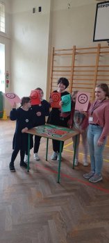 W związku z Międzynarodowym Dniem Świadomości Zagrożenia Hałasem, który obchodzony jest 25 kwietnia, odbył się apel Szkoły Promującej Zdrowie. W oparciu o prezentację multimedialną, uczniowie zostali zapoznani z negatywnymi skutkami hałasu i zaletami ciszy. Prowadzące apel, wykorzystując multimedialny miernik poziomu hałasu, zobrazowały uczniom natężenie hałasu w sali gimnastycznej. Ponadto uczniowie mieli okazję pokonać różne labirynty dźwiękowe przy zachowaniu ciszy. Podkreślono zasady jakimi należy się kierować, aby przeciwdziałać hałasowi w naszej szkole.