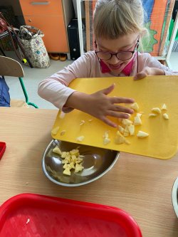 2022.09.22 - Wykonanie sałatki owocowej podczas zajęć świetlicowych