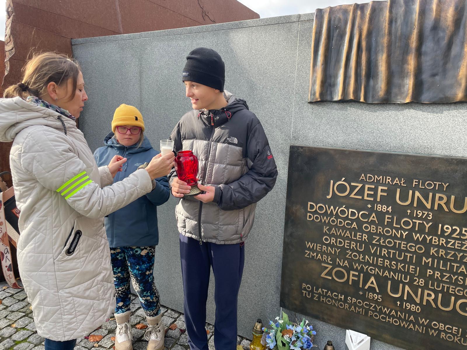 Uczniowie klasy II A i II E SPP pod opieką swoich wychowawczyń udali się na Cmentarz Marynarki Wojennej w Gdyni-Oksywiu. Odwiedzili grób byłej Pani Dyrektor Ośrodka Renaty Tomaszewskiej. Zapalili również znicze na grobach dowódców i żołnierzy poległych w czasie II wojny światowej, w tym admirała Józefa Unruga, który dowodził Obroną Wybrzeża w 1939r. Spacer alejkami cmentarza wprowadził uczniów w nastrój refleksji, zadumy oraz wspomnień o osobach znanych i bliskich. To była również bardzo ważna lekcja patriotyzmu i pamięci narodowej...