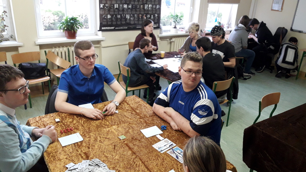 10 listopada 2017 uczniowie klasy II A i II B gimnazjum Karol Godzina i Szymon Tekiela wzieli udział jako drużyna reprezentujaca SOSW nr 1 w Międzyszkolnym Turnieju Gier Planszowych "Polska wiem" . Na terenie SOSW nr 2 w Gdyni Uczniowie walczyli o punkty podczas Quizu z historii Polski oraz "Kolejki". Nowością były gry "Carcassonne" oraz "Scrabble historyczne" . Pierwsza gra polegała na wspólnym budowaniu z niewielkich żetonów łąk twierdz całych miast i dróg. Uczestnicy rywalizowali między sobą o przejęcie kontroli nad co bardziej atrakcyjnymi lokacjami. Wygrywał ten uczestnik który sprytne potrafił pozbawić rywala możliwości ukończenia ogromnego miasta lub przejmował kontrolę nad jego wielką łąką.