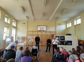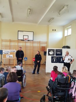 Dnia 24.09.2018r. w naszym Ośrodku odbył się apel z udziałem policji i straży miejskiej. Temat spotkania dotyczył bezpiecznej drogi do szkoły. Podczas apelu szkolnego zostały przypomniane ogólne zasady bezpieczeństwa, zasady ruchu drogowego oraz istota noszenia odblasków w okresie jesieno-zimowym. Uczniowie aktywnie uczestniczyli w zajęciach.