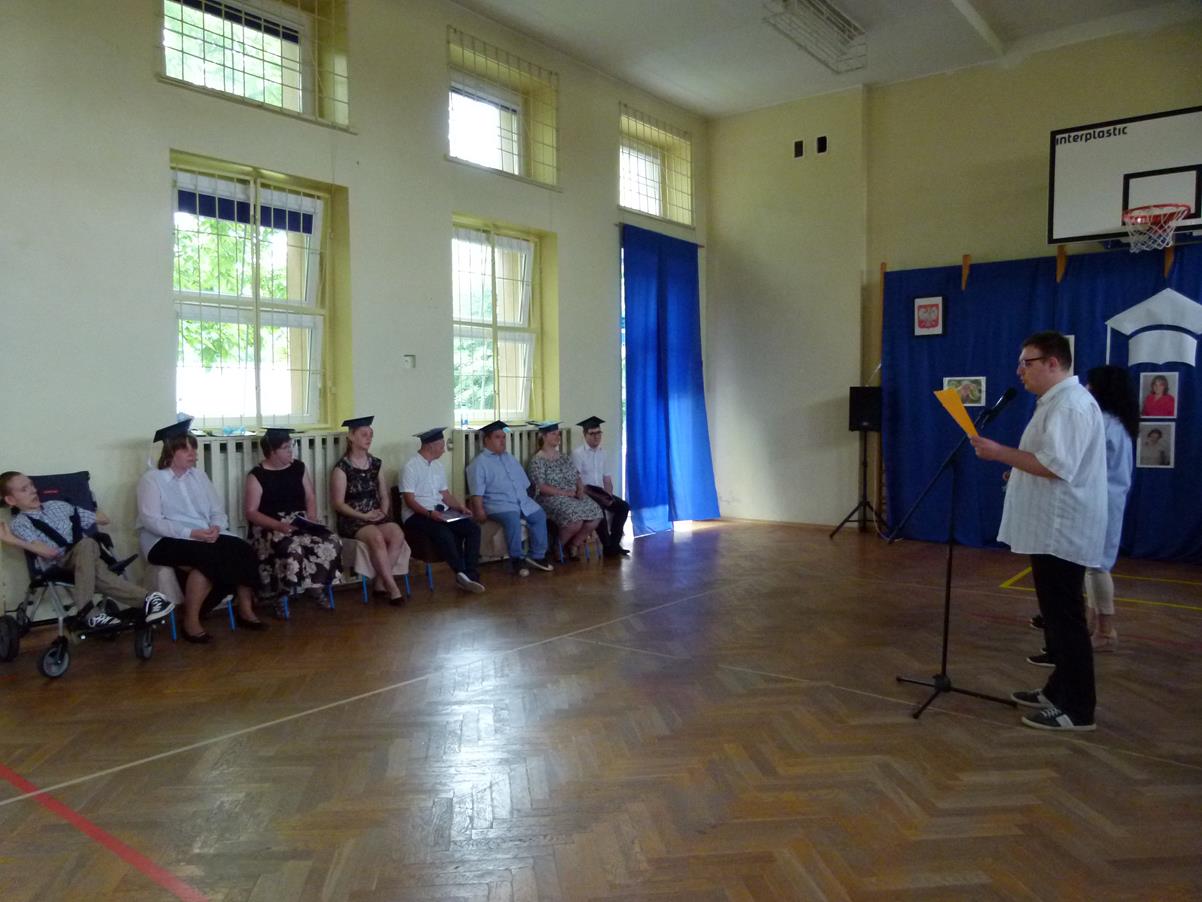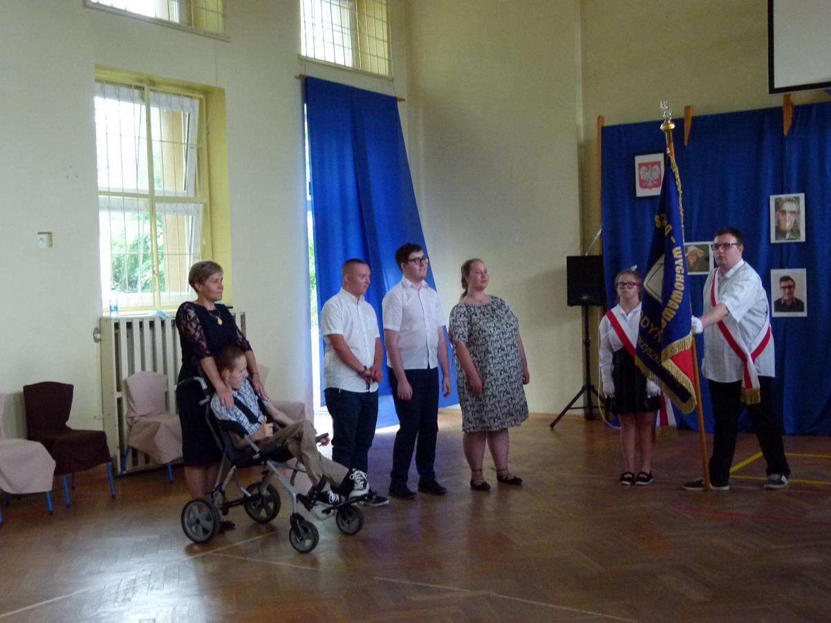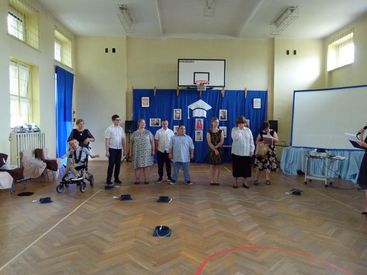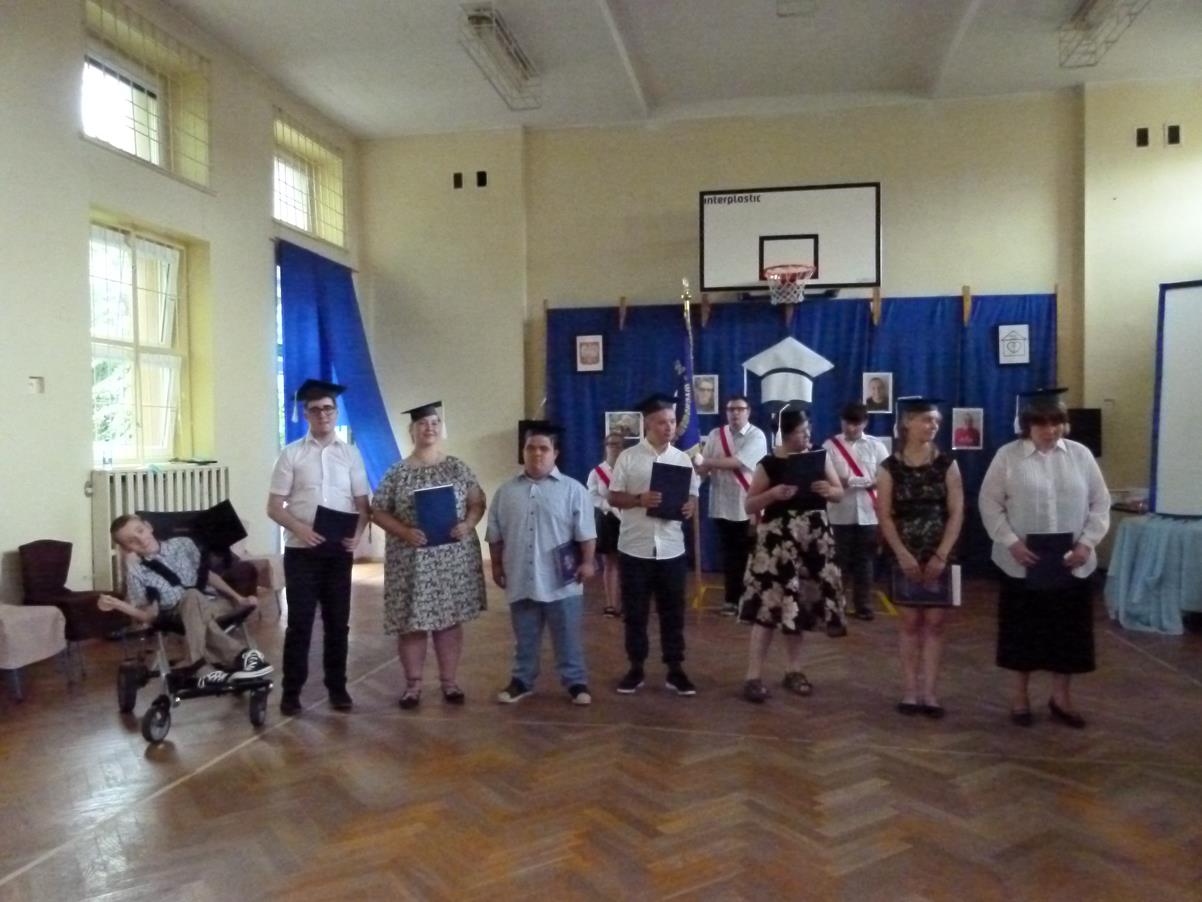Dnia 24 czerwca 2021r. w naszym Ośrodku odbyła się niezwykle wzruszająca uroczystość Pożegnania Absolwentów Roku 2020 i Roku 2021, która rozpoczęła się dostojnym polonezem. Następnie przy melodii znanej piosenki "Ostatni raz z moją klasą" wychowawcy klas Agnieszka Witkowska-Strzelec i Elżbieta Skólska w oparciu o zdjęcia i prezentacje multimedialne przedstawiły długą drogę edukacyjną swoich uczniów: Dawida Golnika, Artura Knapińskiego, Klaudii Szadach, Patrycji Flis, Agnieszki Urban, Marcina Szejpaka, Oliwii Wróblewskiej i Andrzeja Strzelca. Pani Dyrektor Ośrodka Alicja Spica wręczyła uczniom świadectwa ukończenia Szkoły Przysposabiającej do Pracy oraz birety jako symbol absolwenta. Na zakończenie gali, na hasło „Birety w górę” – absolwenci podrzucili swe nakrycia głowy jako wyraz satysfakcji z otrzymania świadectwa ukończenia szkoły. Kochani Absolwenci!!! Przed Wami otwiera się nowy etap w życiu, czas kolejnych doznań, czas dalszego rozwoju, poznania nowych miejsc. Żegnamy Was życzeniami płynącymi z głębi serca. Niech omijają Was troski, smutki i zwątpienia, a towarzyszy zawsze radość, zrozumienie i prawdziwa przyjaźń!!!