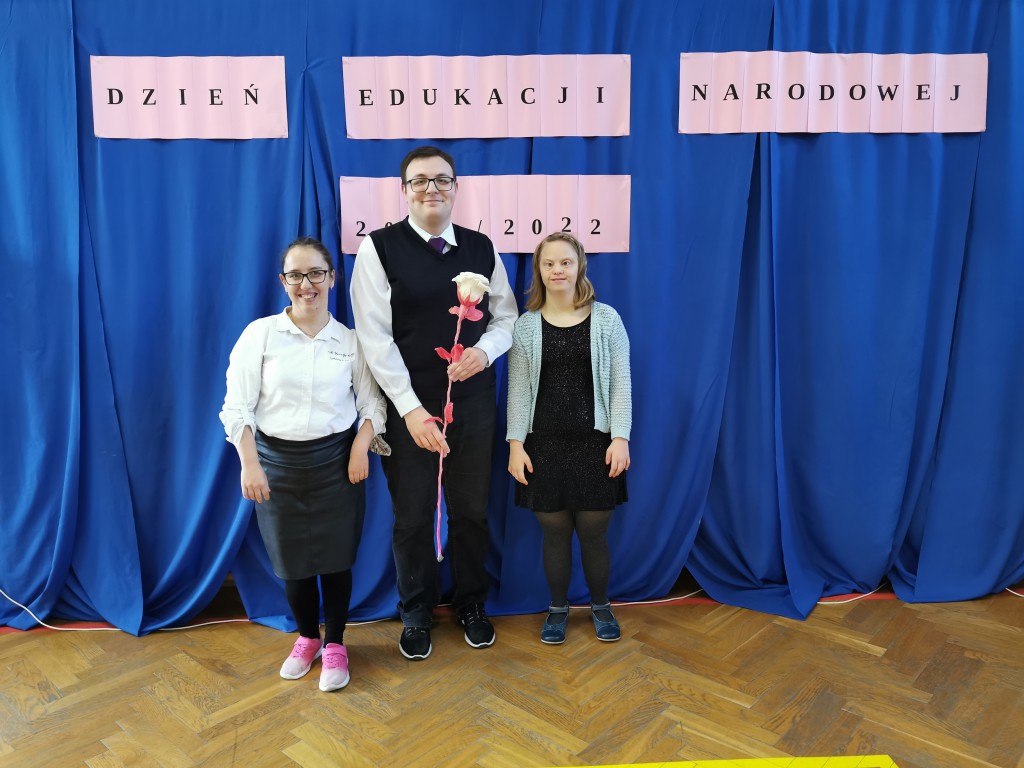 Dnia 15 października 2021 odbył się w naszej szkole apel z okazji Dnia Edukacji Narodowej. Uroczystość przebiegła w obostrzeniu covidowym. Tego dnia nauczyciele oraz pracownicy administracji i obsługi zostali nagrodzeni Nagrodami Dyrektora. Wydarzenie to uświetnił występ szkolnego zespołu muzycznego „Promyki”. Uczniowie zaśpiewali piosenki „Szkolne życzenia” oraz „Bądź moim natchnieniem”. Zapraszamy do obejrzenia zdjęć i krótkiej relacji filmowej z tego wydarzenia.