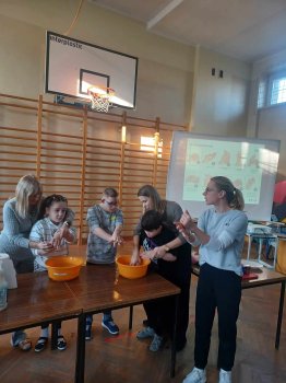 Aktualna pogoda, plucha i niska temperatura to warunki sprzyjające jesiennym przeziębieniom. Jak im zapobiegać? Jakie są naturalne sposoby na wzmocnienie odporności? Otóż odpowiedzi na te pytania przygotował Szkolny Zespół ds. Promocji Zdrowia podczas apelu dla całej społeczności szkolnej. Prowadzące apel w oparciu o krótkie przedstawienie pt. „O królewnie co warzyw jeść nie chciała” i prezentację multimedialną omówiły sposoby na wzmocnienie odporności podczas jesienno-zimowych chłodów. Podkreśliły ogromne znaczenie dla naszego zdrowia aktywności fizycznej, zbilansowanej diety, odpowiedniej ilości snu i higieny osobistej. Uczniowie zostali zachęceni do spożywania warzyw i owoców, do wzbogacenia menu o produkty zawierające dużo witaminy C i tzw. „naturalnych antybiotyków”. Uczniowie samodzielnie przygotowali pyszne i zdrowe masło czosnkowe. Tego dnia cała społeczność szkolna została poczęstowana aromatyczną herbatą z cytryną, miodem, imbirem i sokiem malinowym. Było smacznie i zdrowo, a cała szkoła wypełniła się różnorodnymi zapachami!